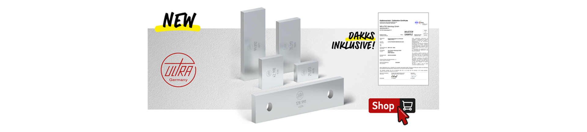 Unsere Messwerkzeuge und Lehren können Sie bei Bedarf bequem im Shop mit Werkskalibrierschein, DAkkS Kalibrierschein und individueller Gravur (z. B. interne ID-Nummern) konfigurieren.