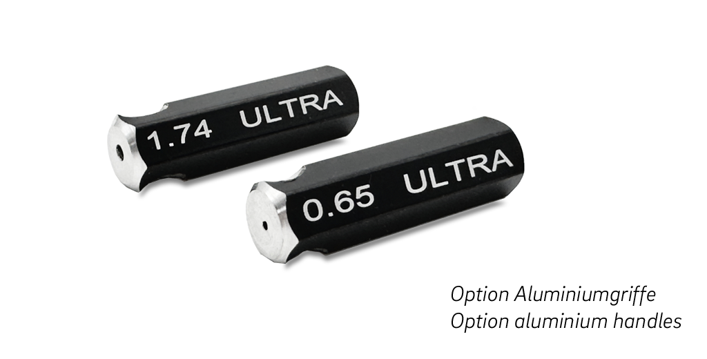 ! ACHTUNG! Es handelt sich nicht um eine Universal-Ausführung der Aluminiumsechskantgriffe. Der angegebene Größenbereich „von-bis“ beschreibt nur den kleinsten bzw. größten Prüfstift-Ø, für den der gleiche Preis gilt. Mit nur einem Griff lässt sich nicht der gesamte Bereich spannen, sondern nur der von Ihnen anzugebende Prüfstift-Ø.