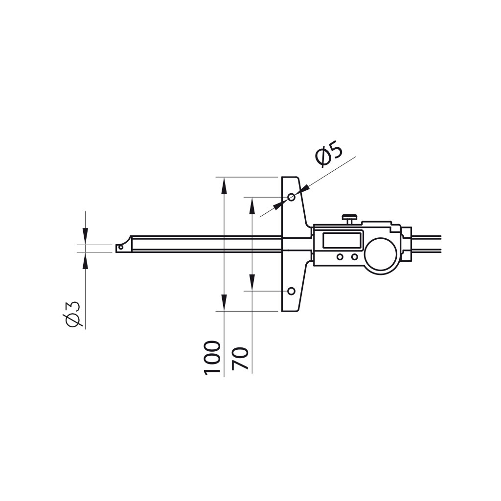 - Messbrücke mit Bohrung Ø 5mm und Bohrungsabstand 70mm für extra lange optionale Messbrücke