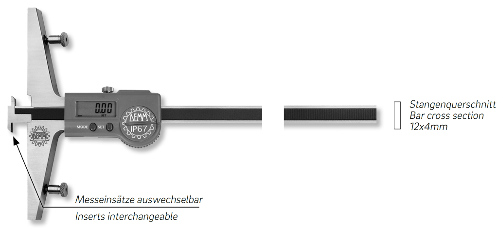 Digital-Tiefenmessschieber DIGI RICOR inox im Etui mit auswechselbarem Messeinsatz