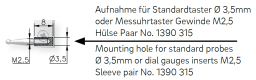 Lieferung im Etui inklusive 1 Paar Hülsen Ø 3,5mm mit Innengewinde M 2,5 und Messeinsätzen mit Kugel Ø 3mm