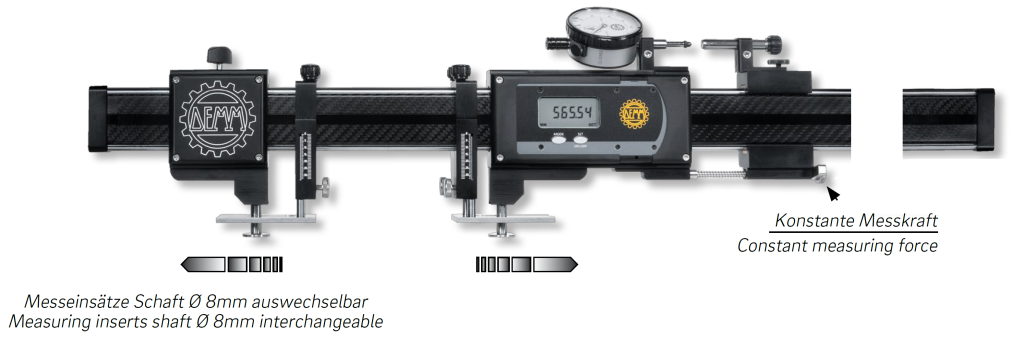 - Messeinsatz frei beweglich durch Messtiefenanschläge für größtmögliche Messgenauigkeit