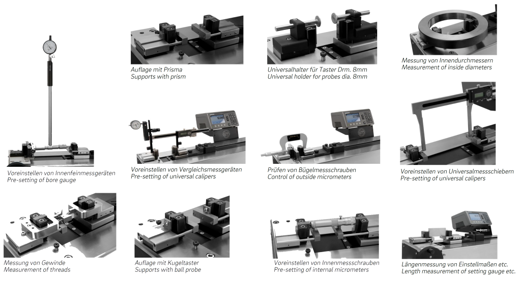 - Zum hochgenauen Einstellen von Innenfeinmessgeräten, Zweipunkt-Innen- und Außenmessgeräten, sowie Mikrometern fast aller Hersteller in nahezu allen Ausführungen – Ersetzt eine Vielzahl von Einstellringen!