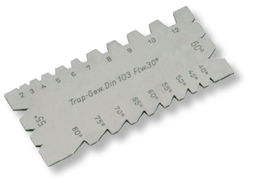 - Winkel 40° – 80°; Trapez-, Spitzgewinde 55° und 60°