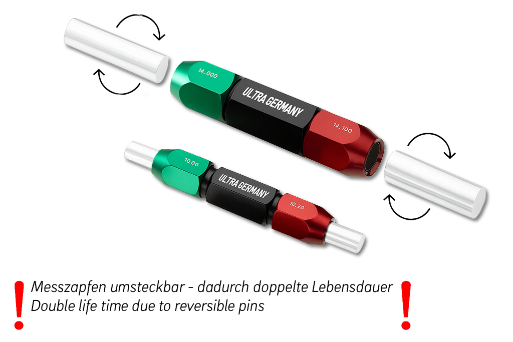 - Messzapfen umsteckbar, dadurch doppelte Lebensdauer