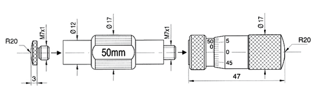 Innenmessschrauben Grundkörper ohne Etui ballige Hartmetallmessflächen Ø 12/17mm, Steigung 0,5mm