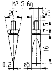 Messeinsätze für Messuhren Hartmetall mit Kegel Ø5mm