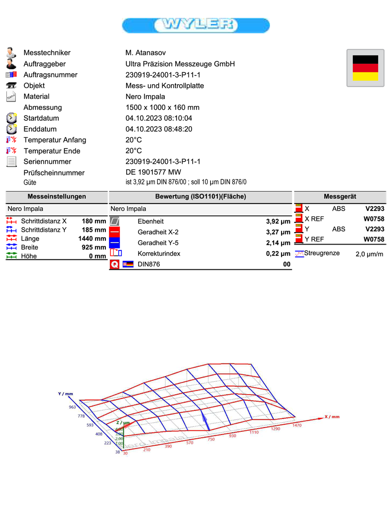 Messplatten aus Naturhartgestein DIN 876/000 inkl. Kalibrierschein