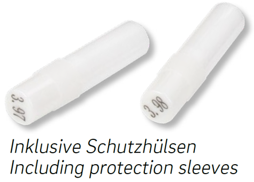 - Inklusive zusätzlichen Kunststoffhülsen pro Stift mit Nennmaßbeschriftung