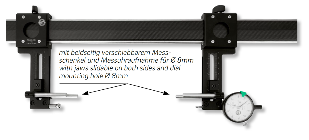 - verschiebbarer Bolzen mit Gewinde M2,5 für Messuhrtaster am linken Schnabel (Messeinsätze)