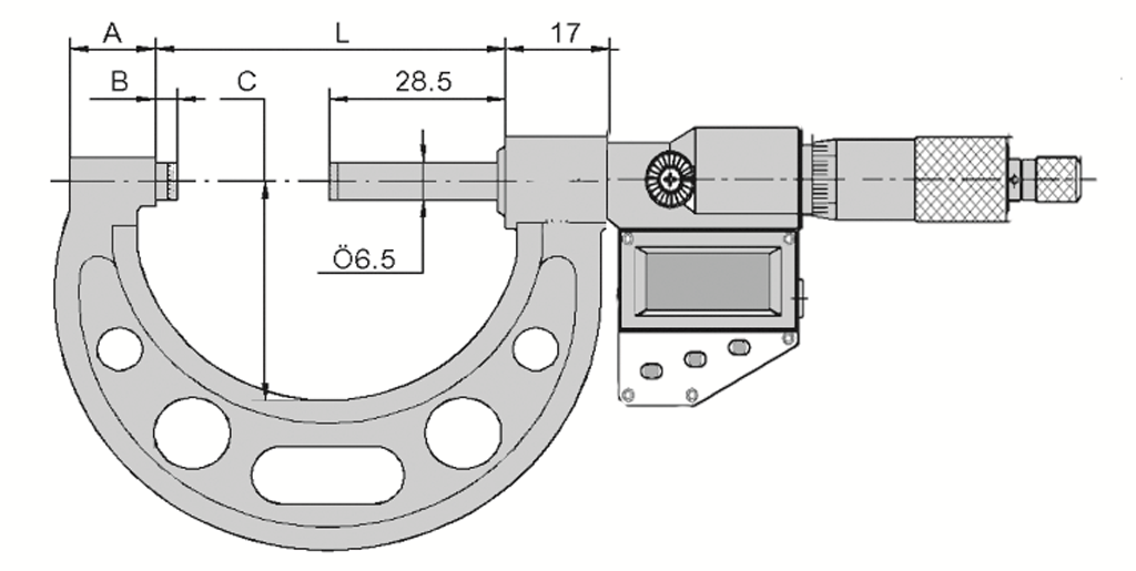 - Tungsten carbide-tipped measuring faces Ø6.5mm