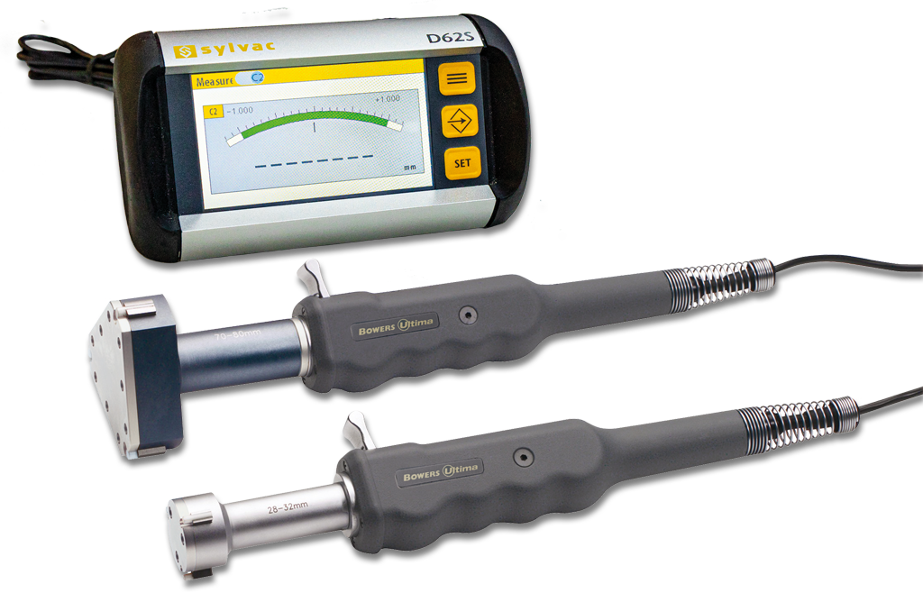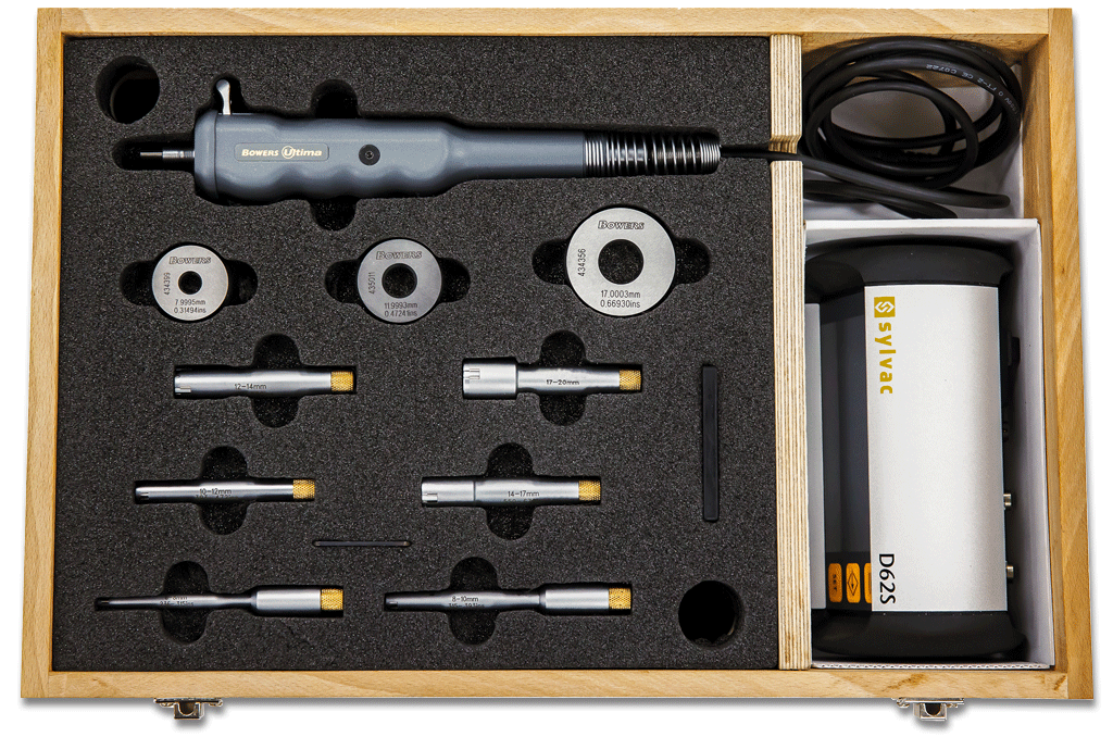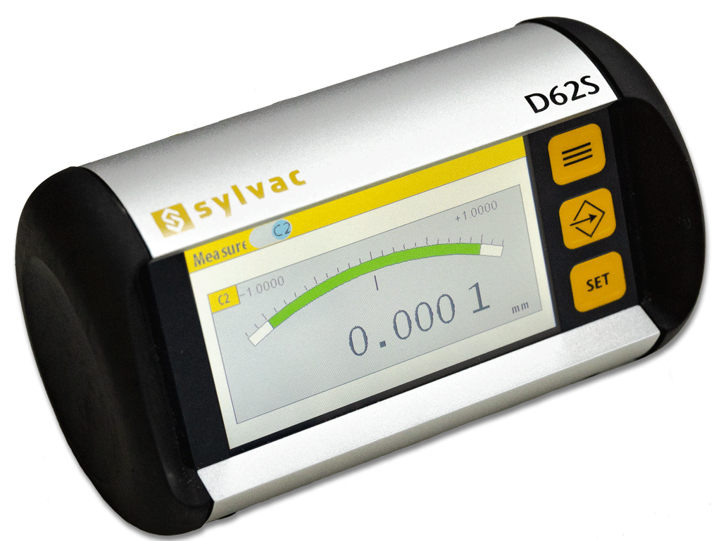 Delivered in a case including holder with measuring probe, measuring heads, setting ring gauges, Sylvac display unit D62S, adapter and UKAS calibration certificates