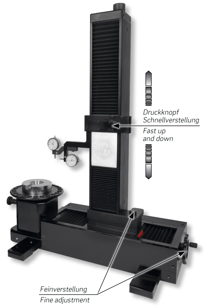 - Precision dial gauges (0.01mm) for X- and Z-axis