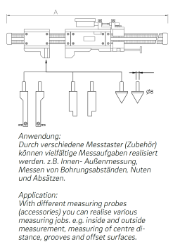 - All standard measuring inserts with connection thread M2.5 or shaft Ø 3.5mm can be mounted with measuring arms no. 1851 810