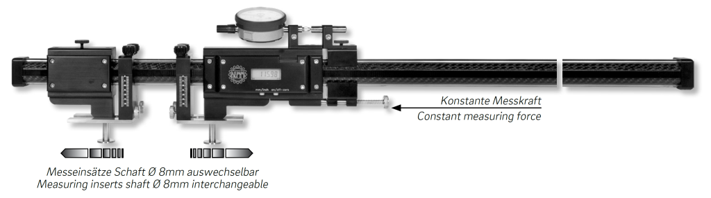 - Measuring inserts free movable due to depth stop which assures high precision measurements