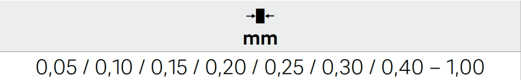 - 0,05-0,10-0,15-0,20-0,25-0,30-0,40-0,50-0,60-0,70-0,80-0,90-1,00mm