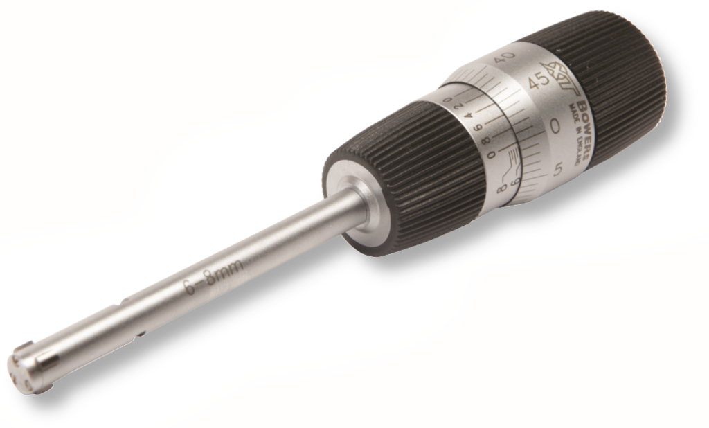 - Tungsten carbide-tipped measuring faces (< 12.5mm with steel measuring faces hardened)