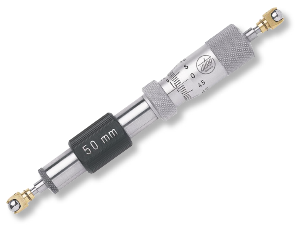 Internal micrometers in box for gear measurement cylindrical, measuring ends Ø 3x8mm, pitch 0,5mm, extensions