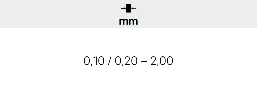 - 0,10-0,20-0,30-0,40-0,50-0,60-0,70-0,80-0,90-1,00-1,10-1,20-1,30-1,40-1,50-1,60-1,70-1,80-1,90-2,00mm