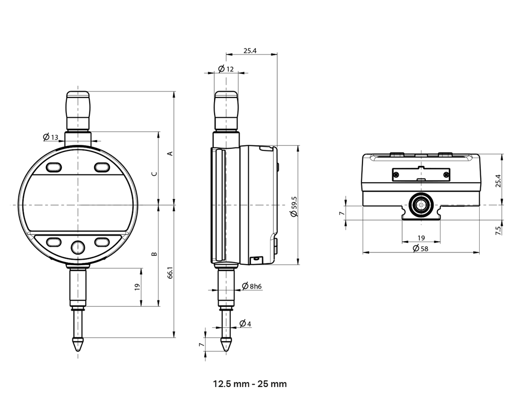 - Measuring range: 25 mm