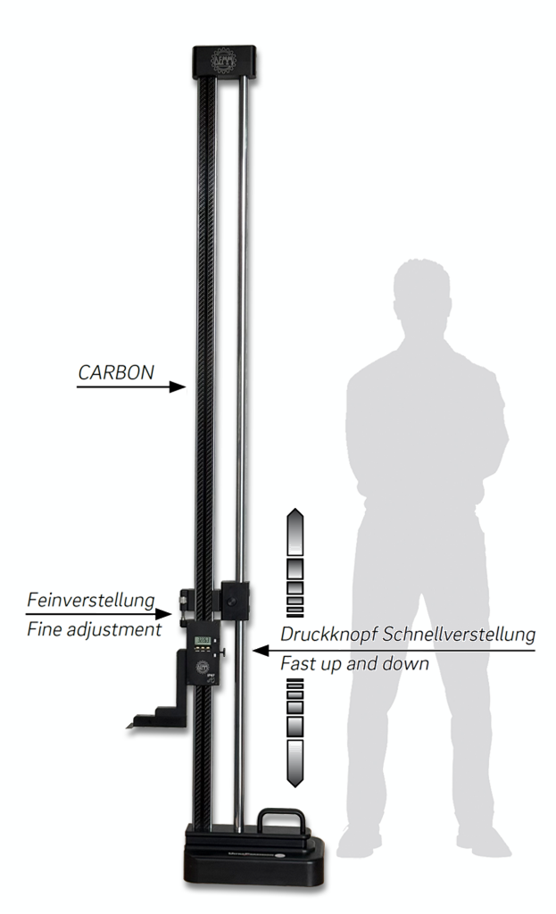 Digital height and marking gauges ATENA CARBON in box Double column, with fine and quick adjustment