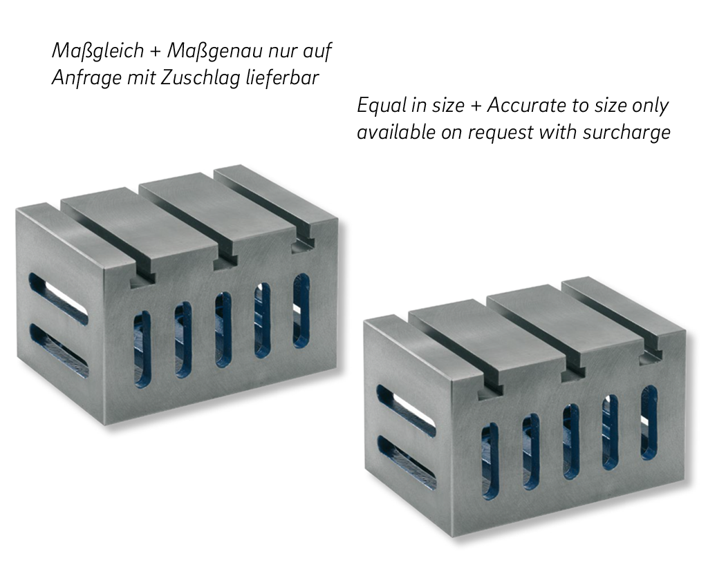 Maßgleiche Bearbeitung: Alle Flächen sind mit einer max. Abweichung von +/- 0,1mm zu einander bearbeitet, die Nennmaße (Länge, Breite, Höhe) sind jedoch nicht toleriert.
