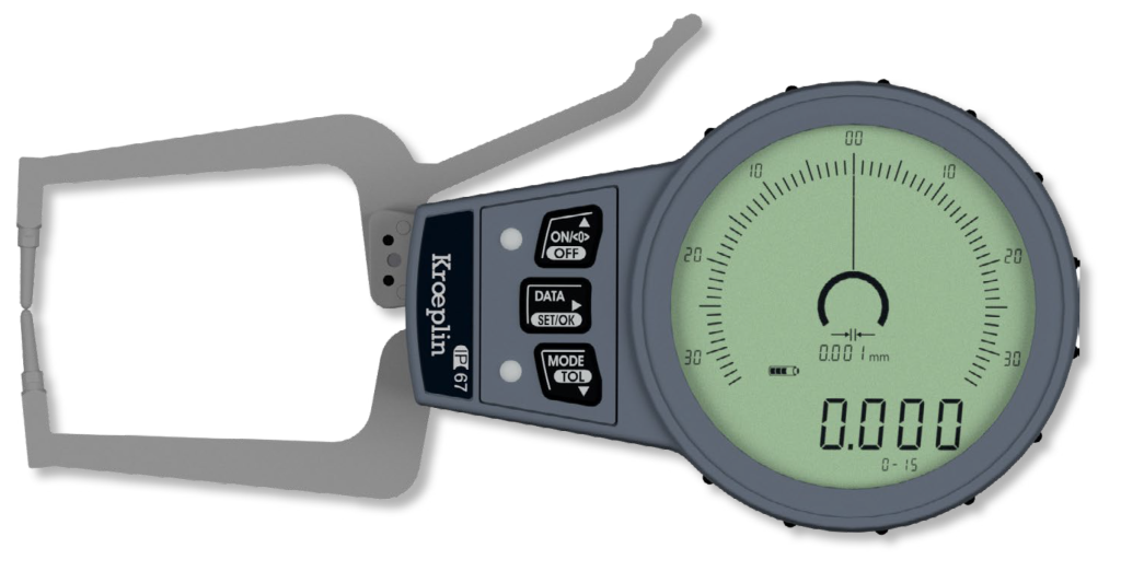 - Skalenteilungswert umschaltbar 0,001 / 0,002 / 0,005 / 0,01mm