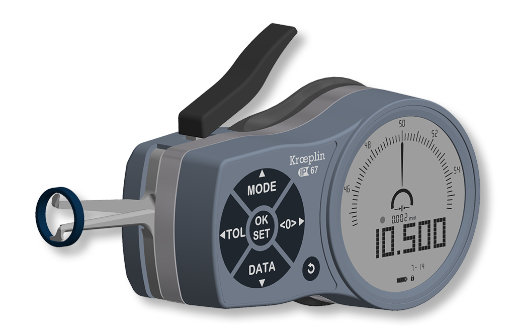 - Skalenteilungswert umschaltbar 0,001 / 0,002 / 0,005 / 0,01 / 0,02 / 0,05mm