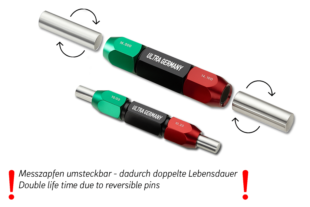 - Messzapfen umsteckbar, dadurch doppelte Lebensdauer