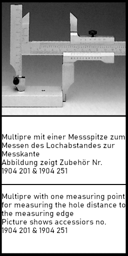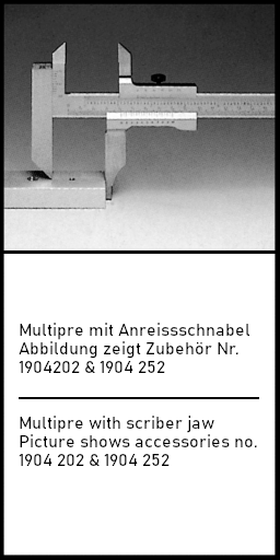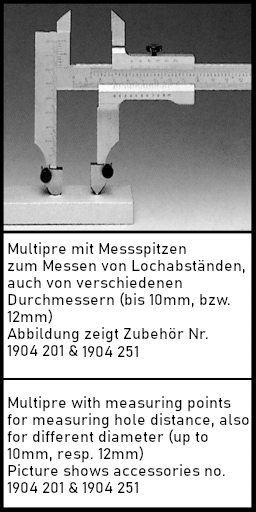Messschieber MULTIPRE inox matt im Etui mit Spitzen, mit höhenverstellbarem Schnabel