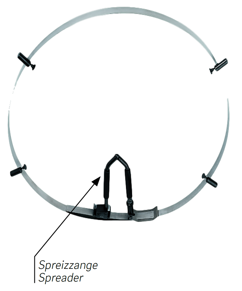 ! Für den Einsatz der Bandmaße wird eine Spreizzange Nr. 5287 101 benötigt. Mit nur einer Spreizzange können alle Bandgrößen genutzt werden.